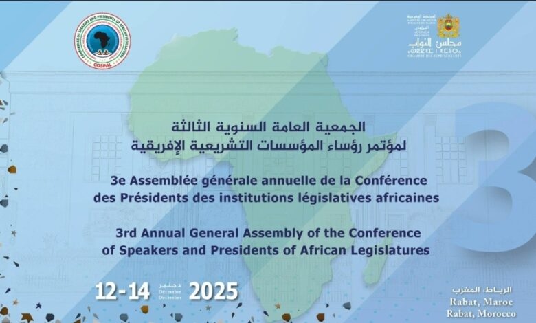 يحتضن مجلس النواب بالمملكة المغربية، خلال الفترة الممتدة من 12 إلى 14 دجنبر الجاري بالرباط، أشغال الدورة الثالثة للجمعية العامة لمؤتمر رؤساء البرلمانات الإفريقية (CoSPAL)، المنظمة تحت شعار: «الريادة التشريعية والدبلوماسية البرلمانية في نظام عالمي متغير».