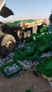 بين تقلبات السوق ومخاطر الطريق: انقلاب شاحنة سردين يخلف خسائر ثقيلة بطريق طرفاية أخفنير